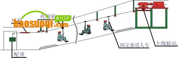 3、  制動可靠,本公司設(shè)計生產(chǎn)的繩索運人系統(tǒng)除高速工作制動外,在大于10°坡的系統(tǒng)設(shè)末端鉗形閘,制動裝置均為失效安全型,液壓泵站結(jié)構(gòu)先進、安全、可靠。